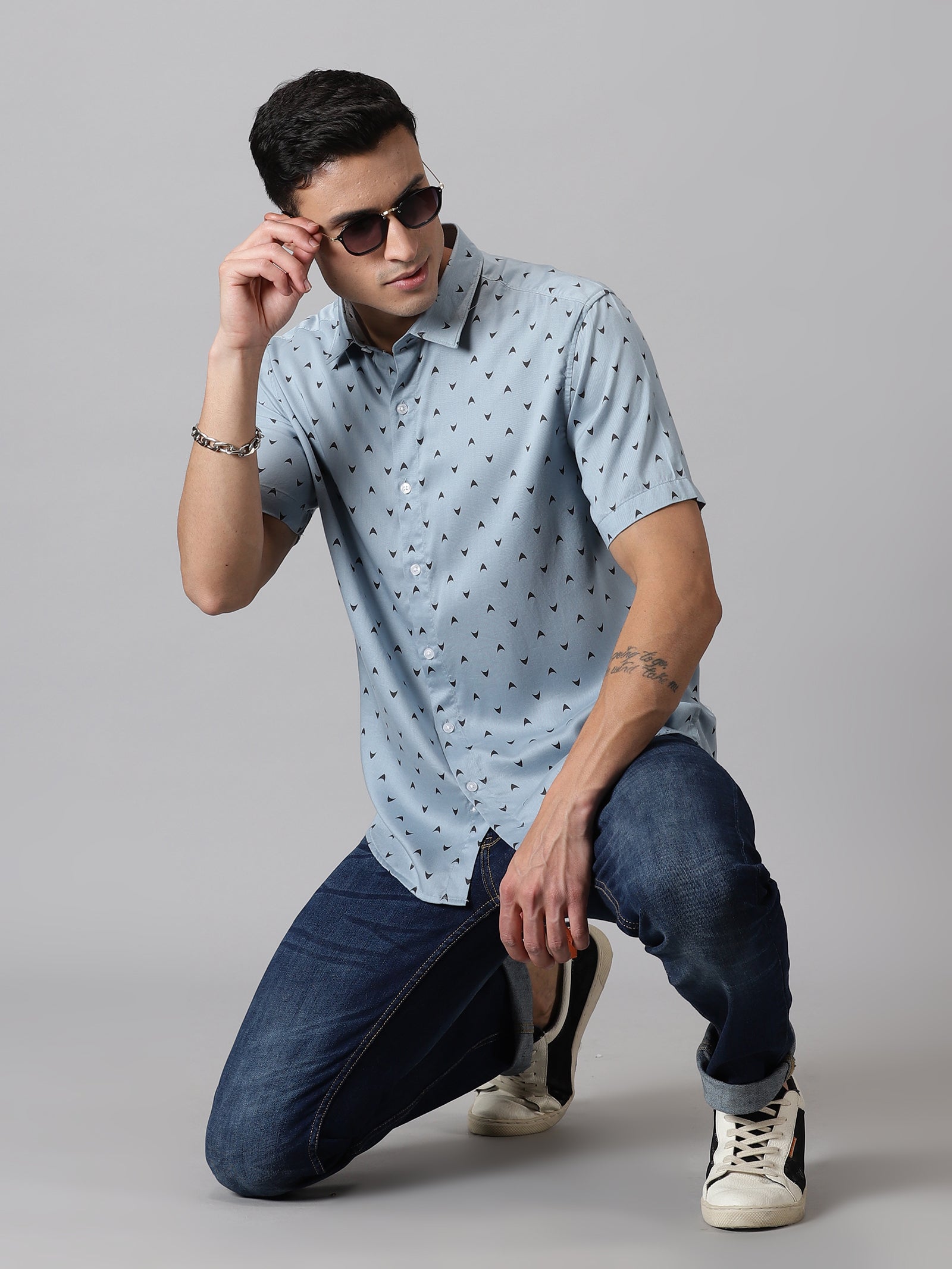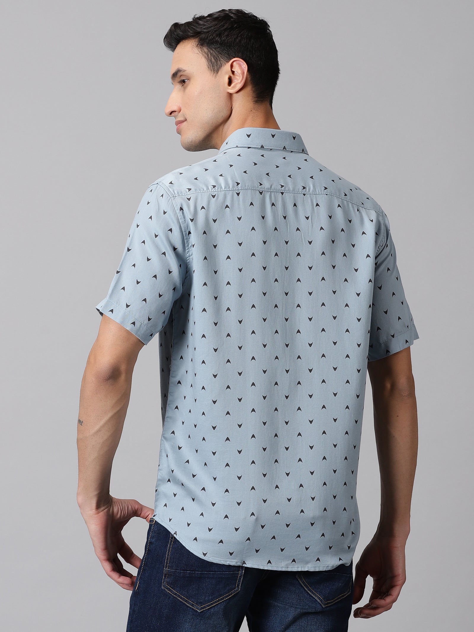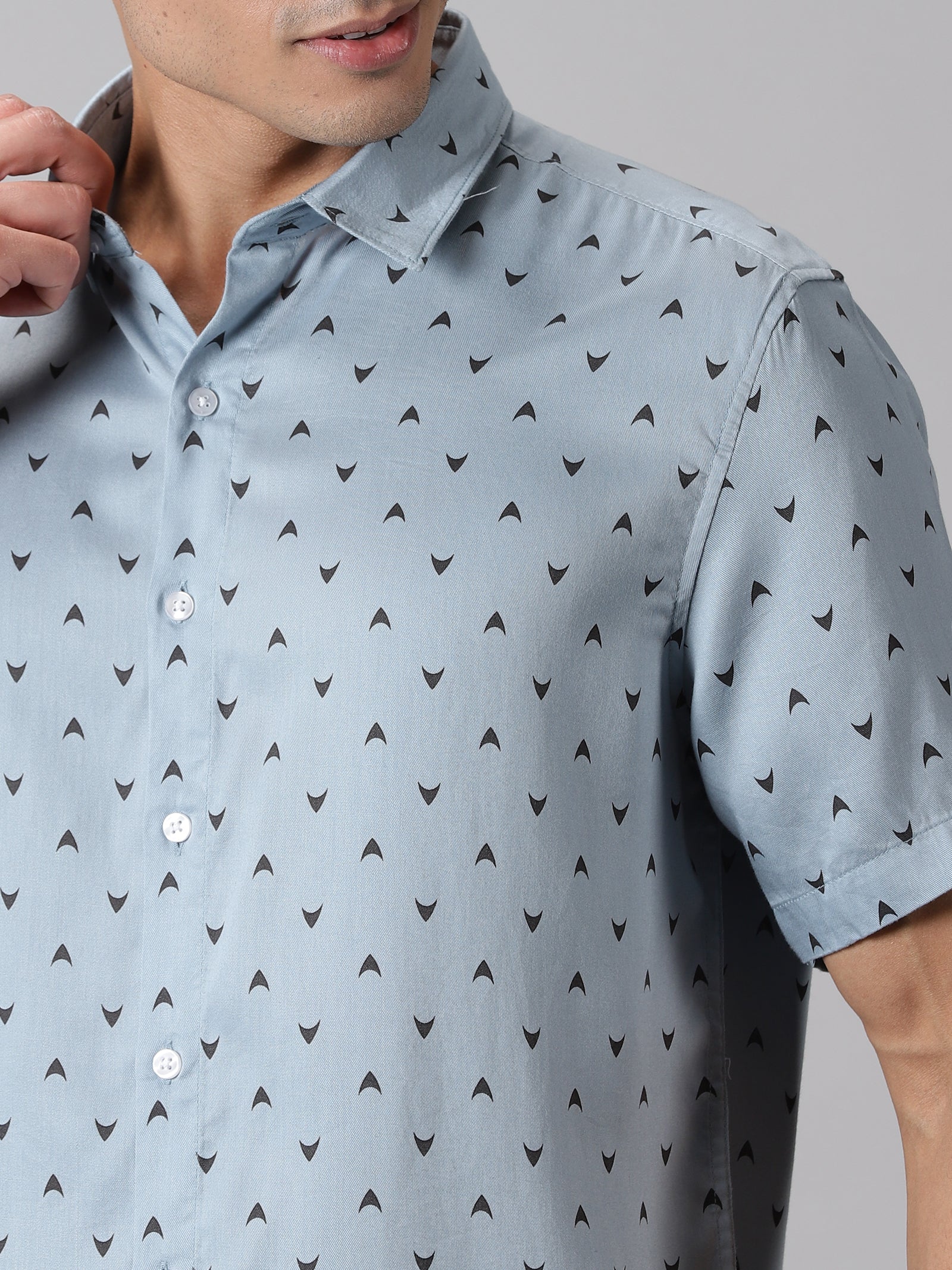 This Half-Sleeve Casual Shirt is crafted from premium cotton fabric. It has a spread collar, short sleeves, and a slightly curved hem.