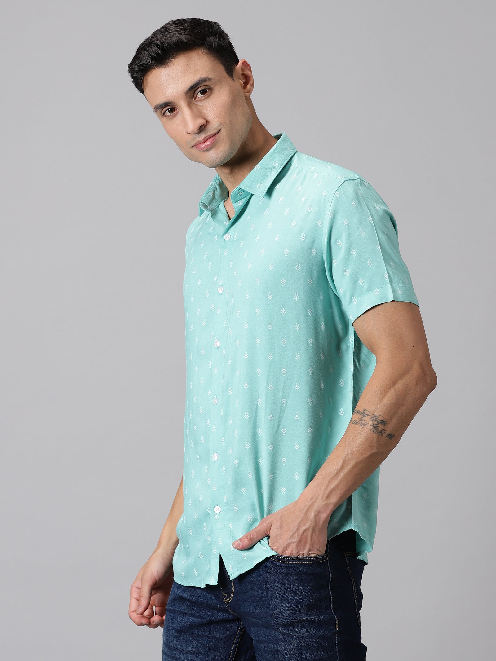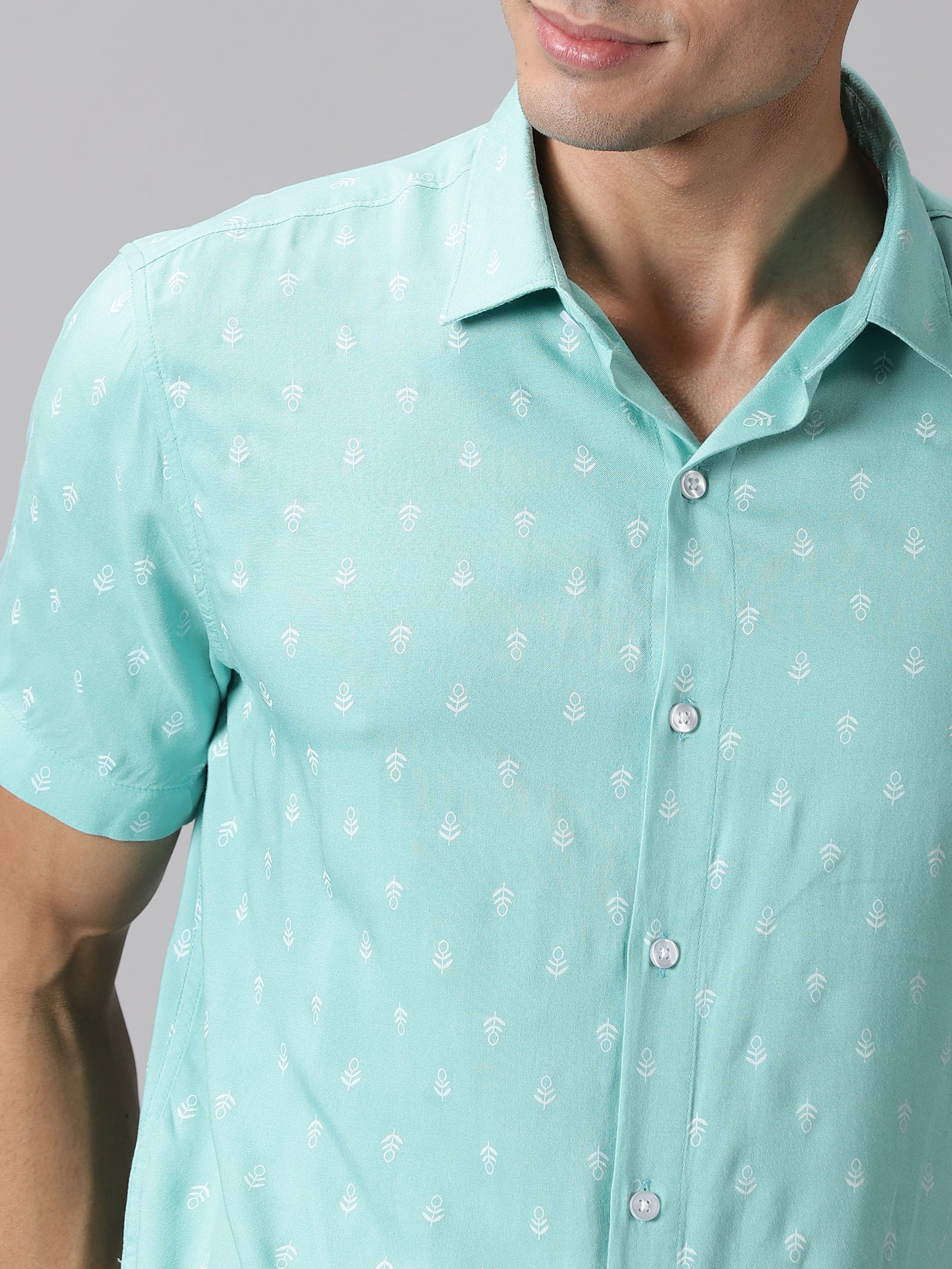 This Half-Sleeve Casual Shirt is crafted from premium cotton fabric. It has a spread collar, short sleeves, and a slightly curved hem.